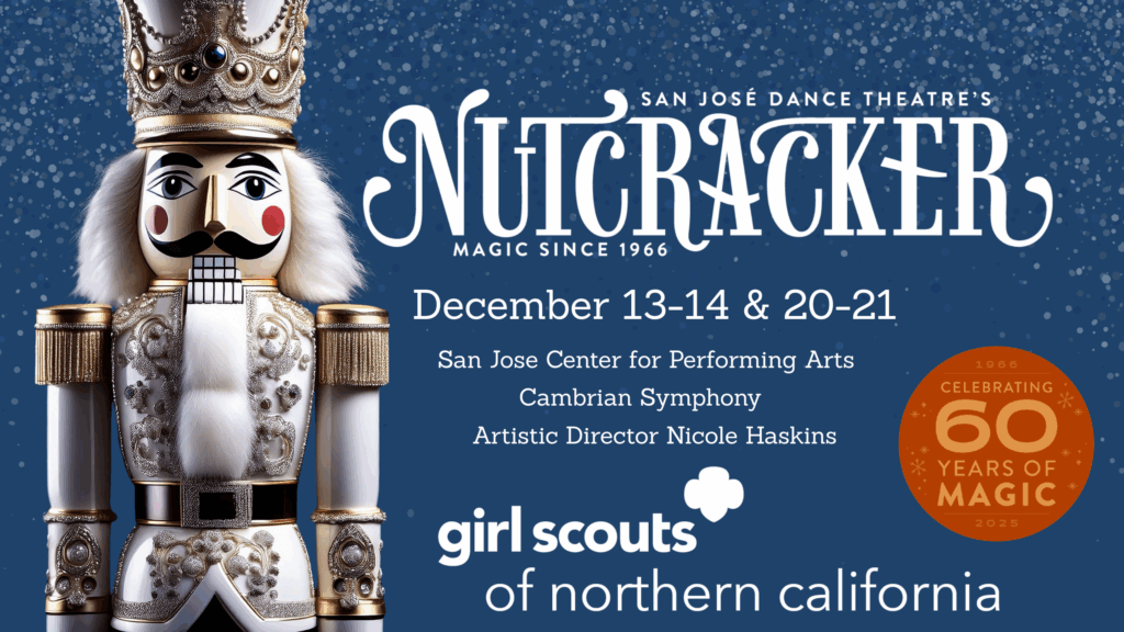 Join San Jose Dance Theatre for our 60th Anniversary production of The Original San José Nutcracker — a beloved holiday tradition for generations. Girl Scouts, leaders, and families are invited to enjoy exclusive discounts, a limited-edition fun patch, and special behind-the-scenes experiences!